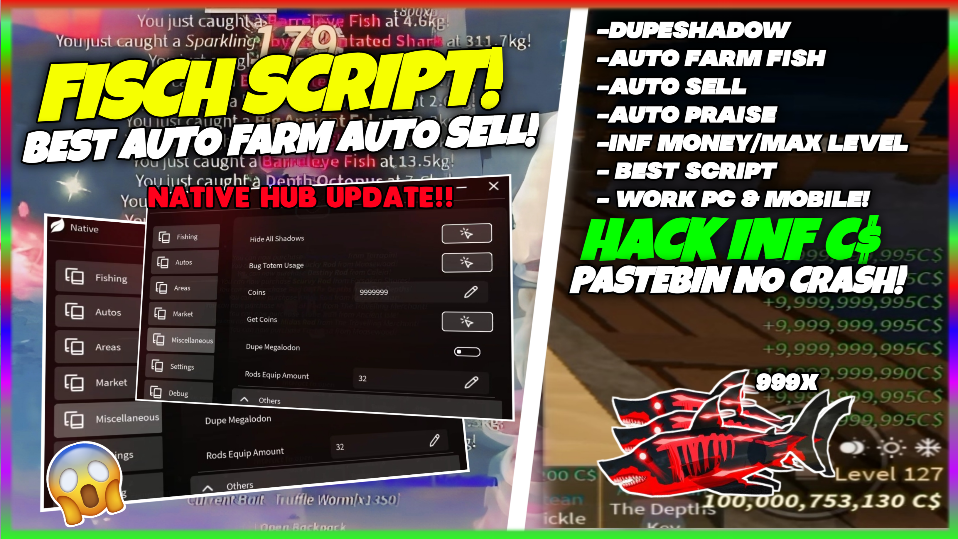 FISCH Script Pastebin 2024 UPDATE DUPLICATE FISH | COIN | SHADOW & MORE | BEST OP SCRIPT UPDATE!