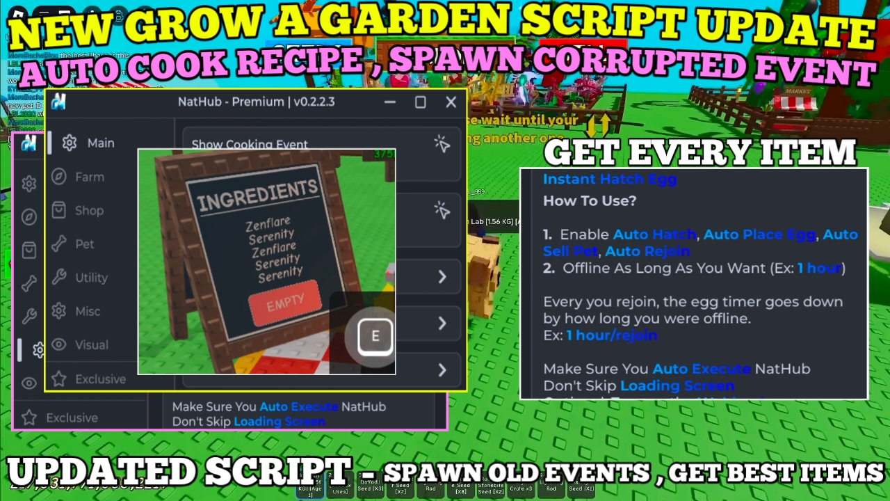 Grow a garden script skip recipe timer